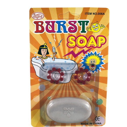 Burst Soap - Prank Bang Soap looks like a real bar of soap, try picking it up a BANG! When your victim lifts up the bar is will make a load bang sound. Perfect prank to play on your family and friends. Simply set the bar of soap in the kitchen or bathroom and set the bang mechanism.