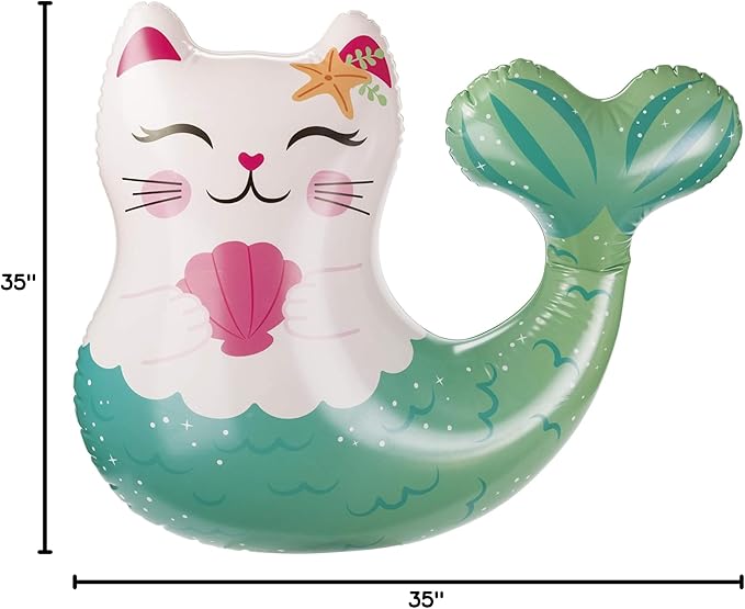 Toysmith Bobbin' Buddies Inflatable Mer Kitty Water Floatie is uniquely designed with a 35in weighted bottom for added stability for safe pool-side fun. Purrfectly suited for splashing around or hanging out poolside on land or in water. A perfect gift for kids ages 5+ for a day at the pool, lake, beach, or ocean.